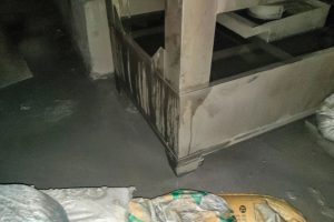 ▲喷砂工序配套的水喷淋装置正在溢流