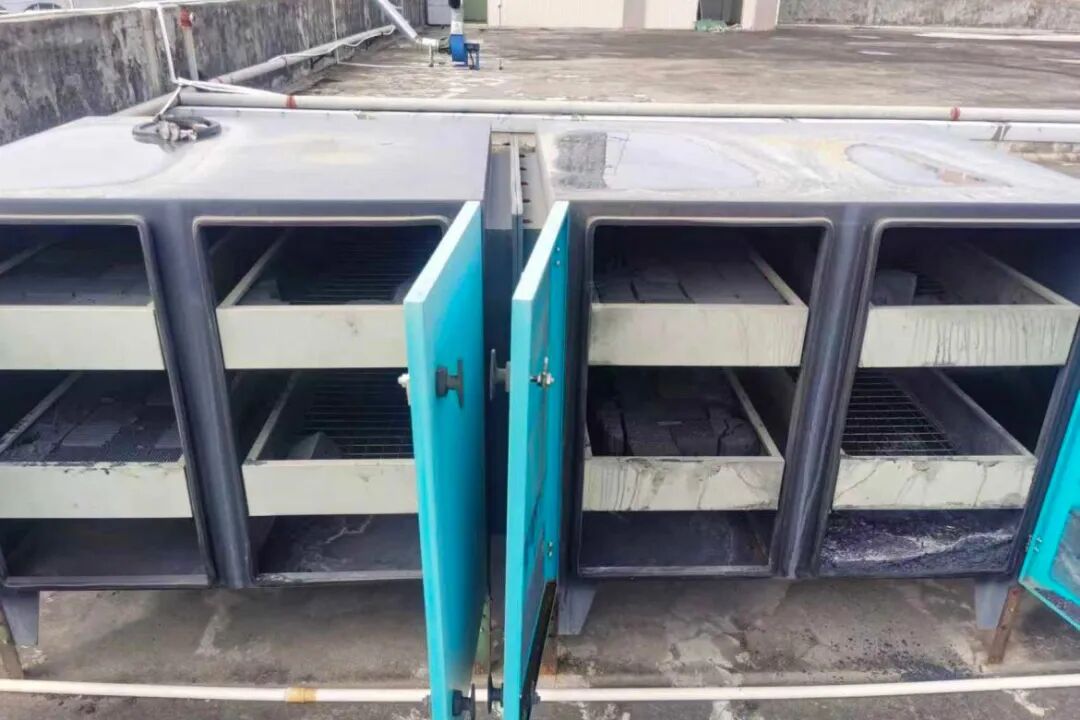 根据环评批复要求,该企业的押出、注塑工序应在密闭环境中进行,废气收集后经废气处理设施处理高空排放。然而,执法人员现场检查时发现,配套的废气处理设施并未开启,抽风机处于静止状态;废气处理设施的活性炭箱中,8个活性炭抽屉有4个缺失活性炭,废气处理设施形同虚设。