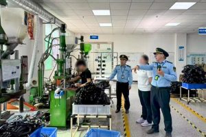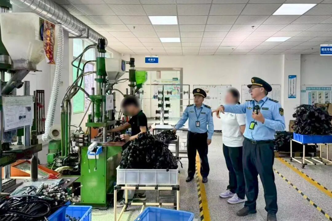 现场检查时,一楼车间3条正在生产的押出线旁,设有5个排气扇并全部开启,将未经处理的废气直接排向外界。执法人员用简单纸张测试,清晰印证废气直排事实。二楼注塑车间中,6台立式注塑机未配套废气收集系统,其中2台正在生产,产生的废气在车间内无组织排放,此外该车间窗户全部敞开,部分废气通过窗口逸散至外环境。焊锡、组装工序虽已配套废气收集系统,但整体废气治理措施严重不到位。